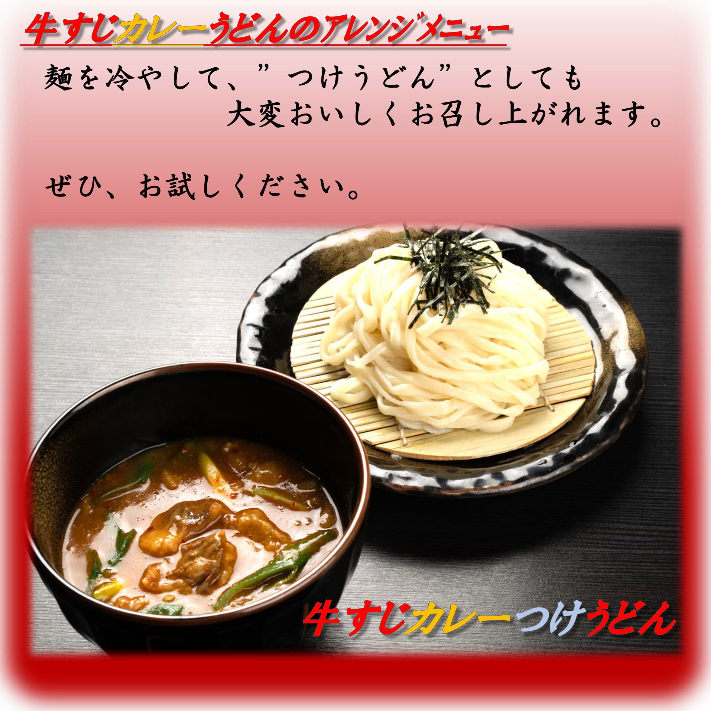麺を冷やして、”牛すじカレーつけうどん”としてもお召し上がれます。